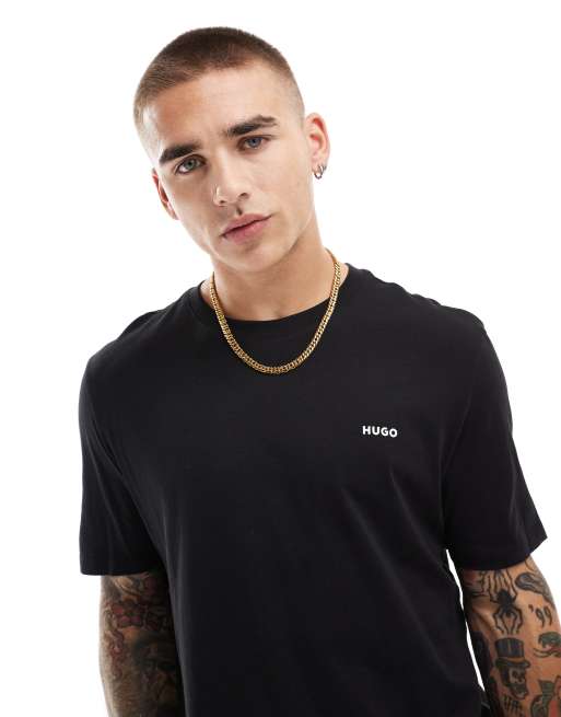 Hugo - Dero - T-shirt met klein logo in zwart