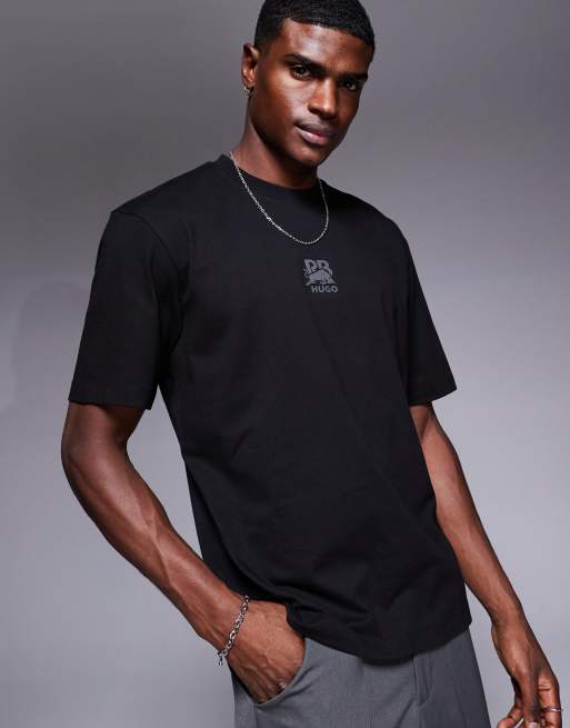 HUGO - Red Bull Racing Capsule - Deckies - Ruimvallend T-shirt met zilver logo in het midden in zwart