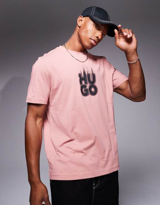 HUGO Red - Delayer - T-shirt met print op de borst en rokerig gestapeld logo in roze