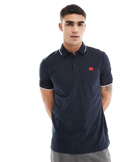 HUGO Red - Deresino - Poloshirt met een gekleurd randje in marineblauw