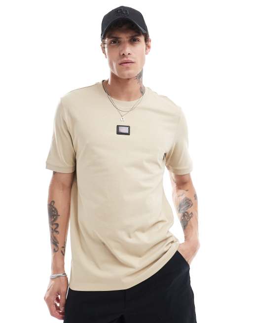 HUGO Red - Diragolino - T-shirt in beige met logobadge in het midden