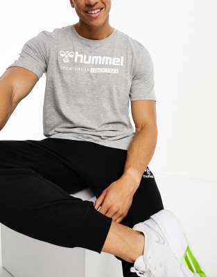 Hummel - Regular-fit T-shirt met oversized logo in grijs