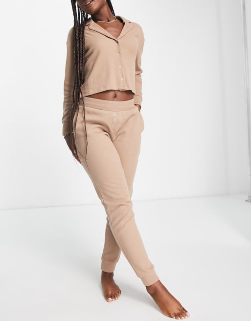 Hunkemoller - Pyjamaset met wafelsturctuur in bruin