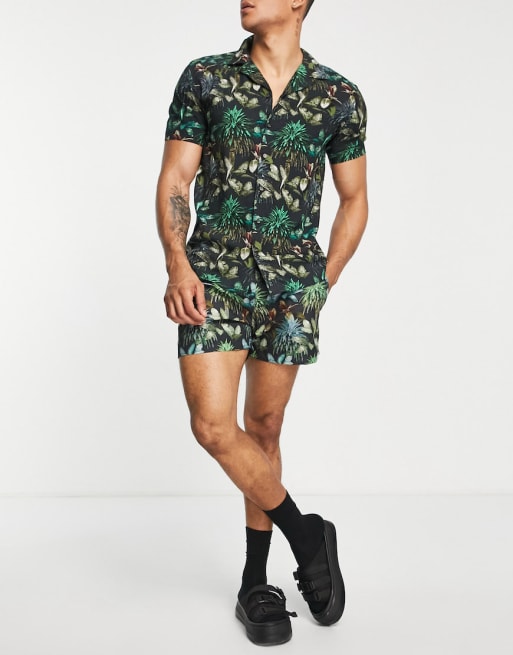 Hunky Trunks - Bikiniset in zwart met palmenprint