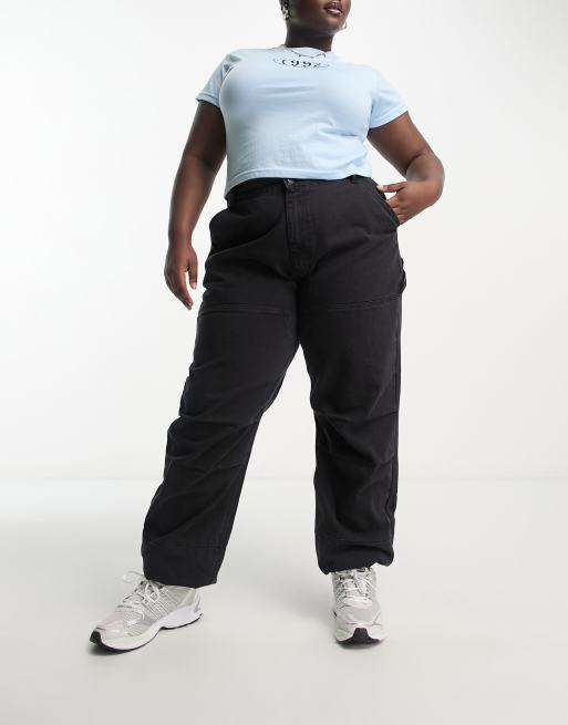 I Saw It First Plus - Exclusives - Denim joggingbroek met lage taille in zwart met wassing