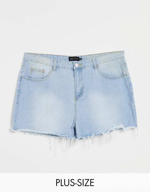 I Saw It First Plus - Mom shorts met hoge taille en onafgewerkte zoom in blauw met lichte wassing