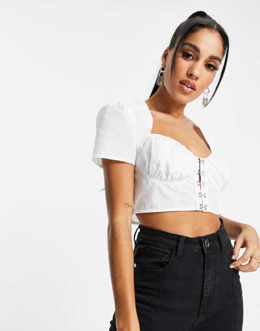 I Saw It First - Crop melkmeisjes-top met oogjes in wit
