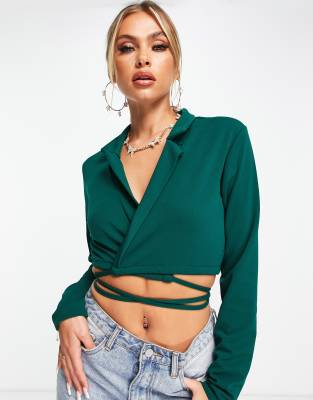 I Saw It First - Cropped blazer met strikceintuur in smaragdgroen, deel van co-ord set