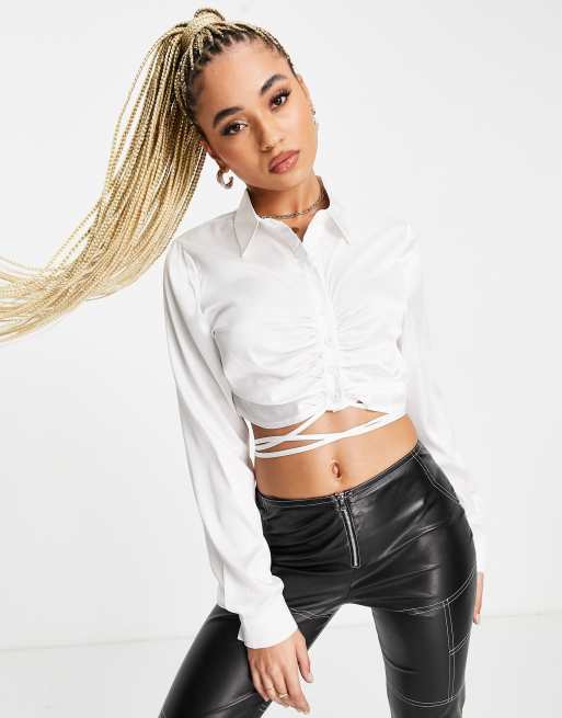 I Saw It First - Gerimpeld cropped overhemd in ivoor