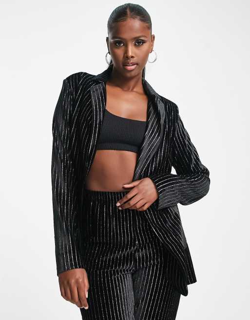 I Saw It First - Gestreepte fluwelen blazer in zwart, deel van co-ord set