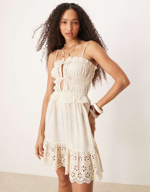 Iisla & Bird - Mini-strandjurk met broderie en strik in crème