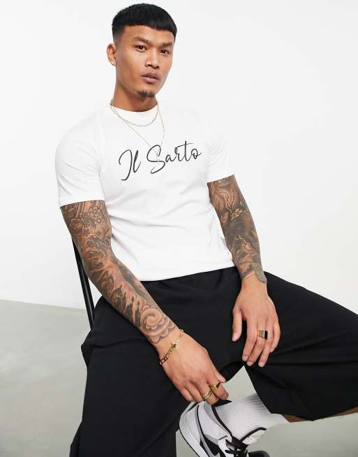 Il Sarto - Slim fit T-shirt met geschreven logo in wit