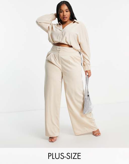 In The Style Plus - Broek met wijde pijpen in crème, deel van co-ord set