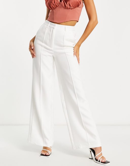 In The Style - Broek met figuurnaden en hoge taille in crème
