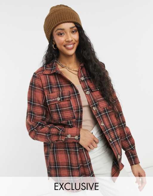 In The Style - Exclusives - Oversized overhemd met ruiten in bruin multi