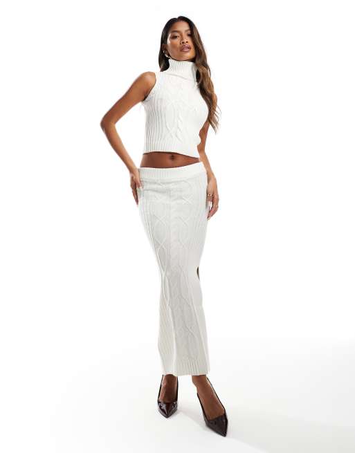 In The Style - Gebreide co-ord set met mouwloze coltrui met kabels en maxi rok in crème
