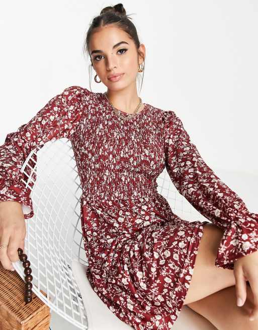 In The Style x Jac Jossa - Mini-jurk met lange mouwen en ruches langs de zoom in bloemenprint