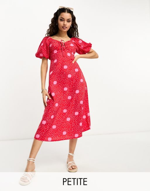 Influence Petite - Midi jurk met gestrikte voorkant in rode stippenprint