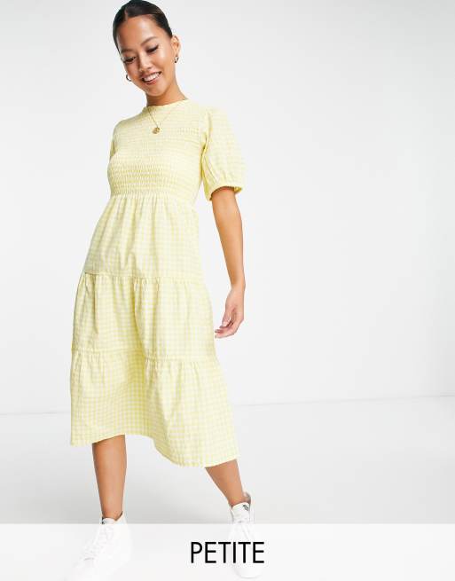 Influence Petite - Midi jurk met gingham ruit en stroken in geel