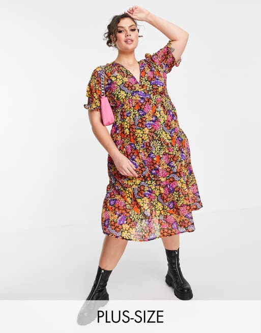 Influence Plus - Midi jurk met gekruiste striksluiting op de rug en bloemenprint