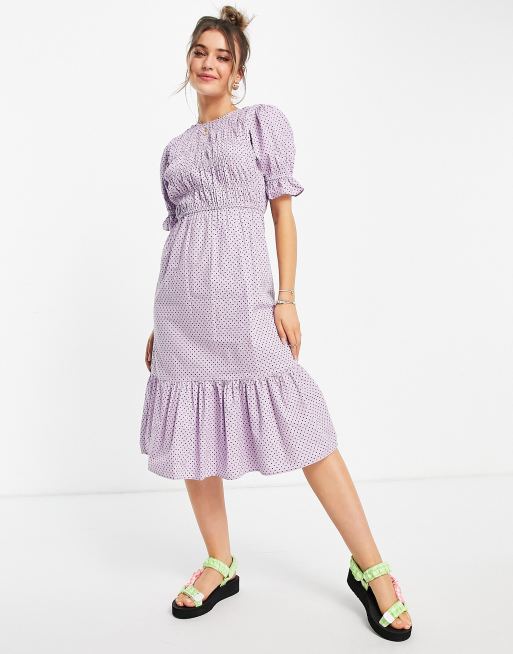 Influence - Midi jurk met stippen in lila