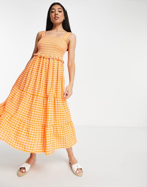 Influence - Midi strandjurk met ruitprint in oranje