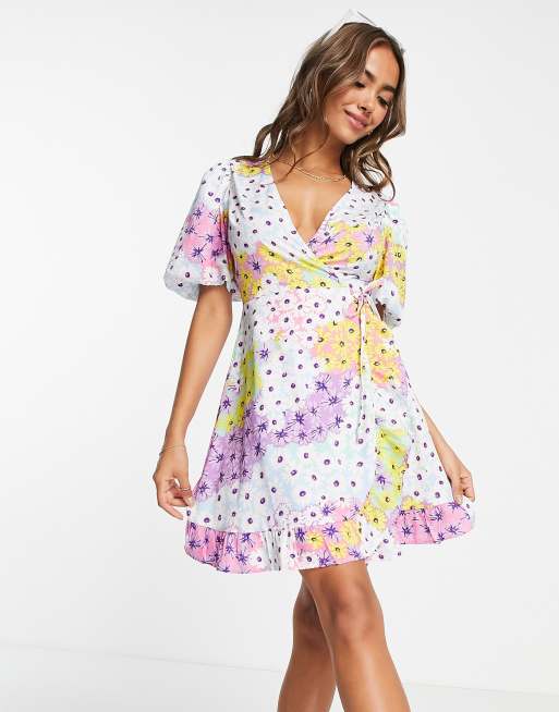 Influence - Mini jurk met overslag en gemengde bloemenprint