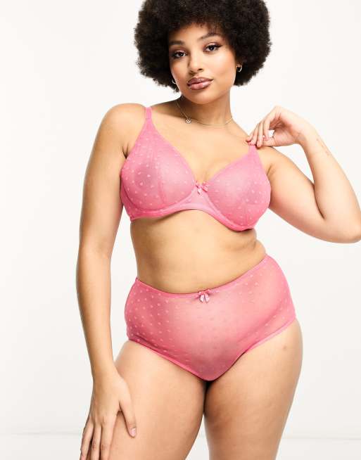 Ivory Rose Curve - Doorschijnende onderbroek van mesh met hartjes en hoge taille in roze