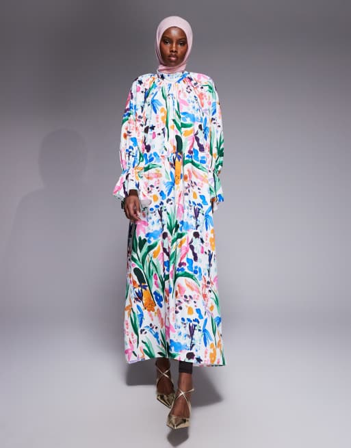 IYAL - Hoogsluitende maxi jurk met manchetten en bloemenprint