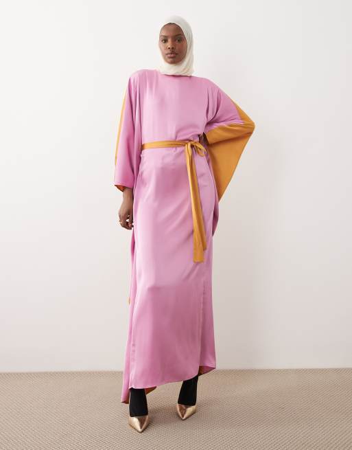 IYAL - Maxi jurk met gestrikte taille in roze en oranje