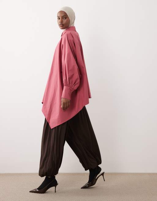 IYAL - Oversized harembroek van bamboe met aansluitende boorden in bruin