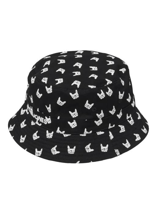 Jack & Jones - Bucket hat met bulldogprint in zwart