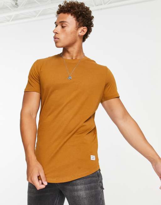 Jack & Jones - Essentials - Katoenen T-shirt met lange pasvorm en ronde zoom in bruin