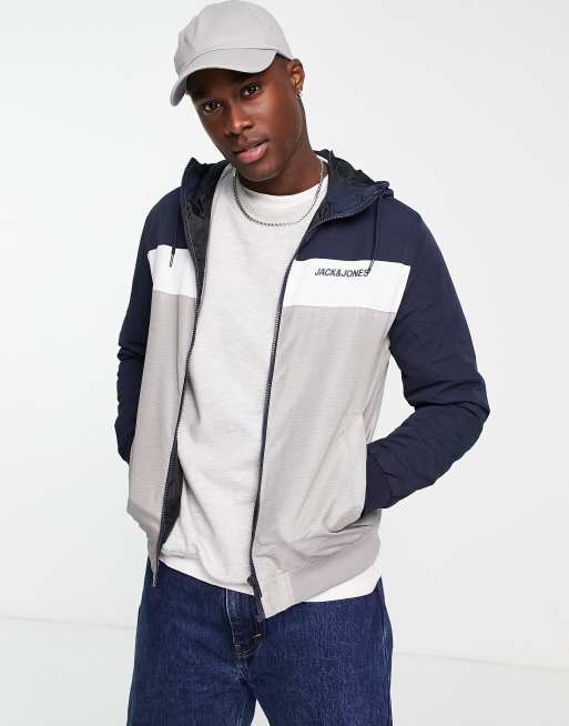 Jack & Jones Essentials - Lichtgewicht jack met capuchon en logo in marineblauw