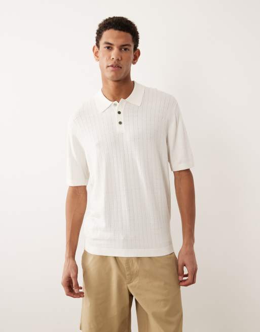 Jack & Jones - Gebreide polo met vierkante textuur in wit