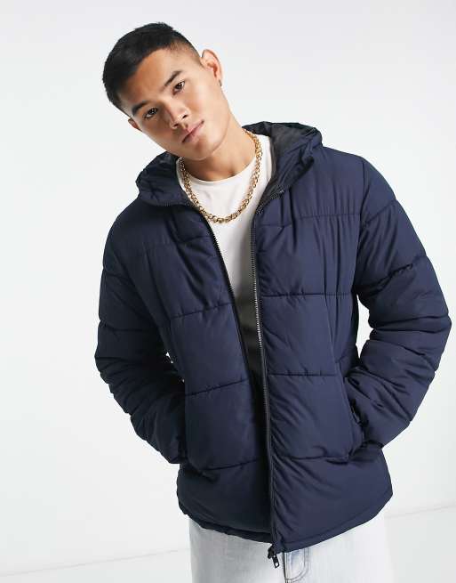 Jack & Jones - Gewatteerd jack met capuchon in marineblauw