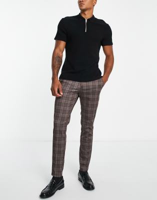 Jack & Jones Intelligence - Nette slim-fit broek van jersey in bruin met ruiten