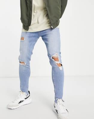 Jack & Jones Intelligence - Pete - Smaltoelopende jeans met scheuren in blauw