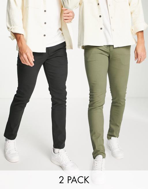 Jack & Jones Intelligence - Set van 2 smaltoelopende chino's in zacht olijfgroen en zwart