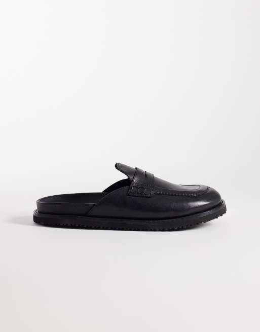 Jack & Jones - Leren loafer-muiltjes in zwart
