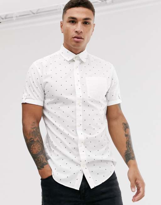 Jack & Jones - Originals - Overhemd met fijne print en korte mouwen in wit