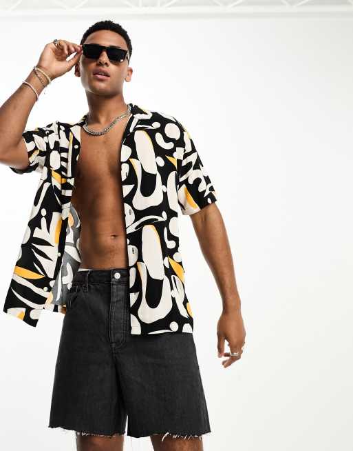 Jack & Jones - Originals - Overhemd met reverskraag en abstracte print in zwart