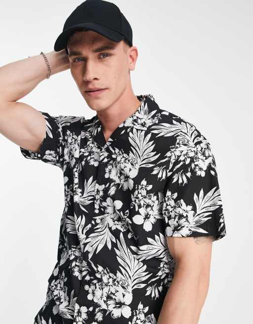 Jack & Jones Originals - Overhemd met reverskraag in zwart met bloemenprint