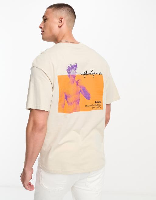 Jack & Jones - Originals - Oversized T-shirt met standbeeldprint op de achterkant in beige