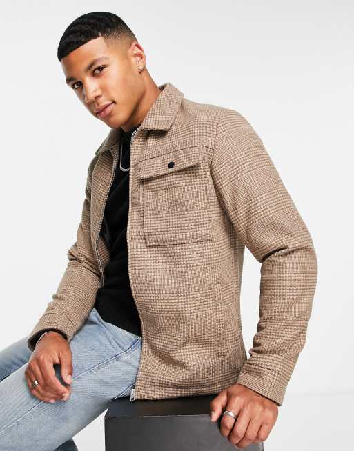 Jack & Jones - Originals - Wollen harrington jack met zak en ruiten in beige