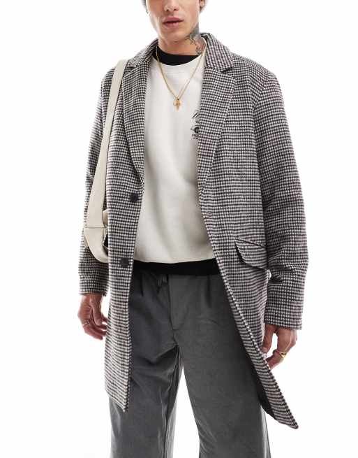 Jack & Jones - Overjas van wolmix in bruine ruit