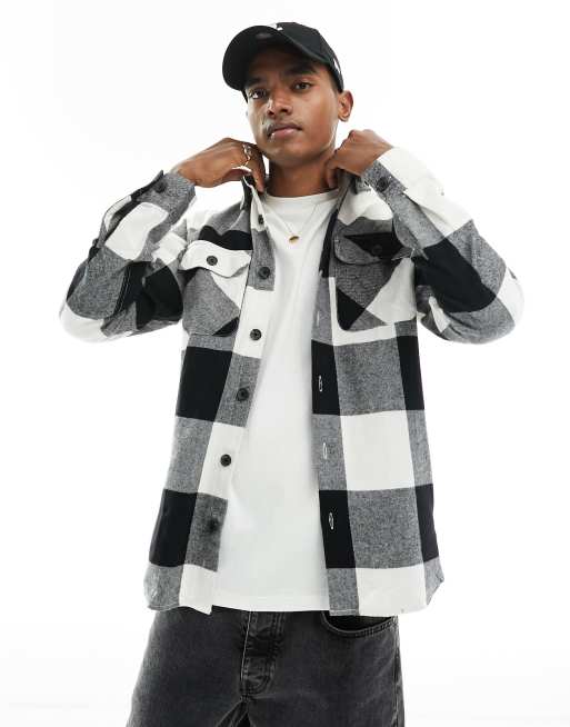 Jack & Jones - Oversized overshirt met Buffalo-ruit in wit en zwart