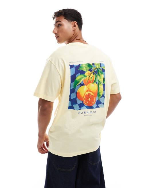 Jack & Jones - Oversized T-shirt met sinaasappelprint op de achterkant in geel