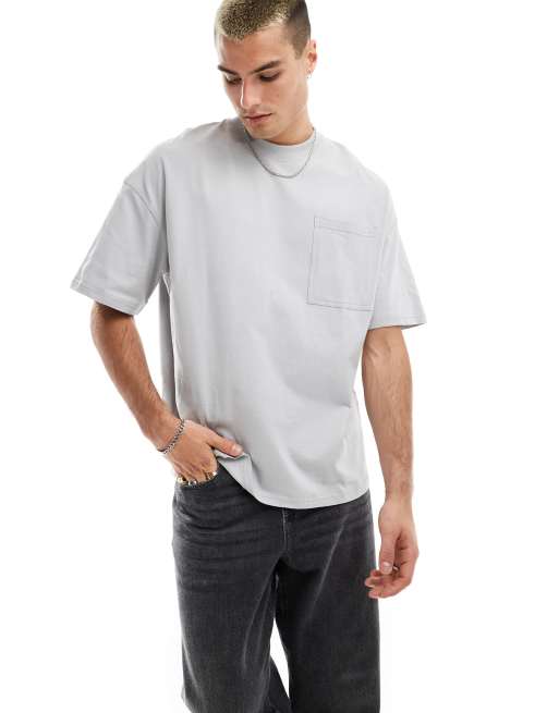 Jack & Jones - Oversized T-shirt met zak in lichtgrijs