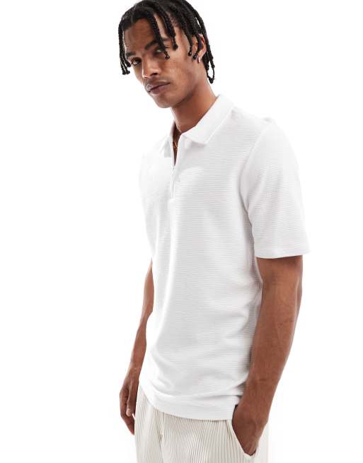 Jack & Jones - Polo met textuur en rits in wit